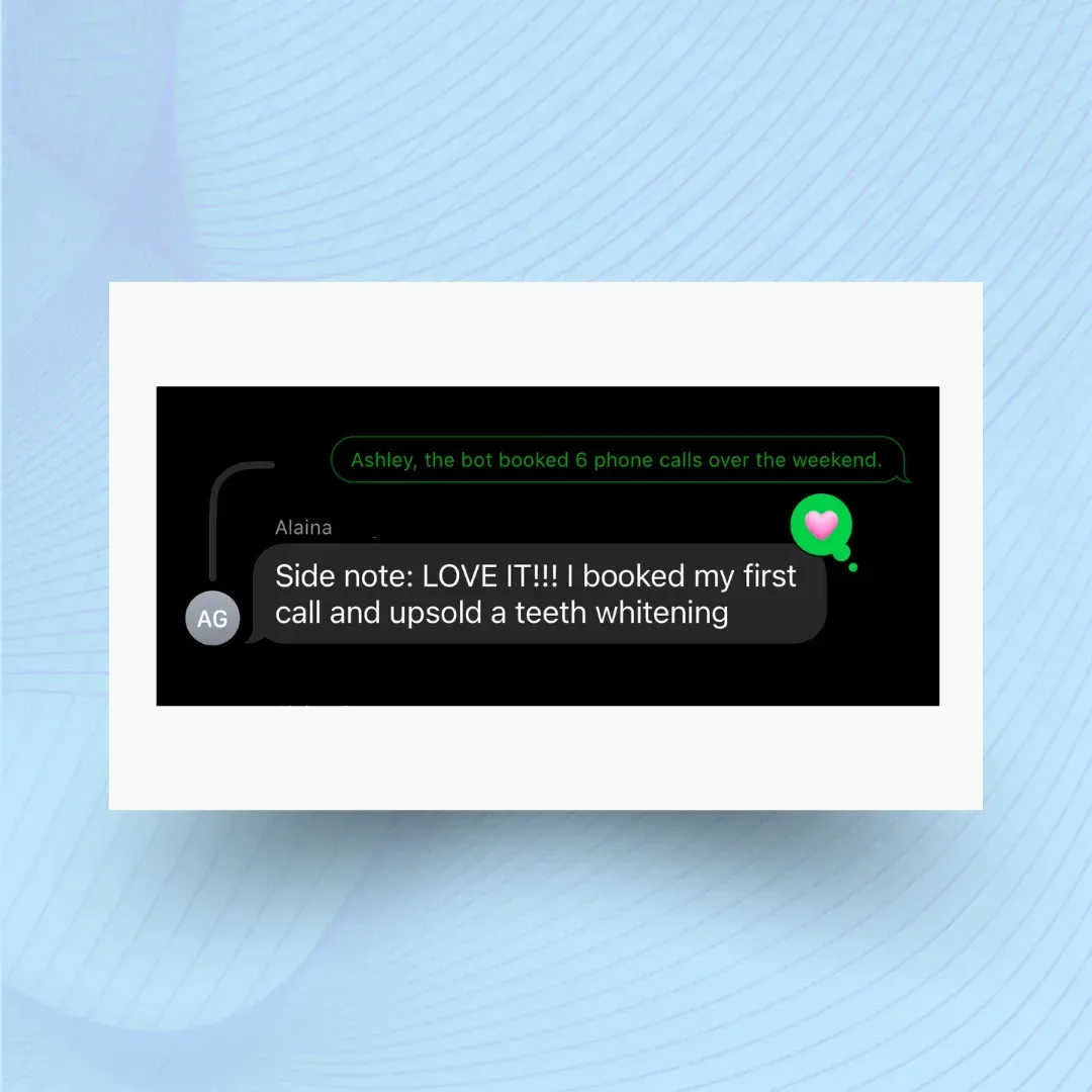 "¡ME ENCANTA! Reservé mi primera cita y vendí un blanqueamiento dental como upsell."