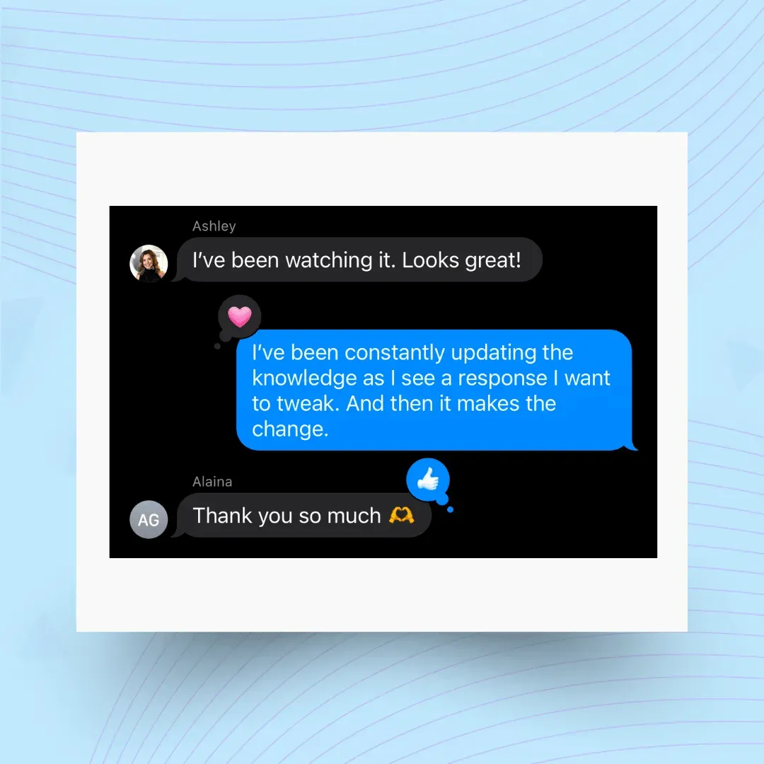 Pero si una conversación requiere atención personalizada, transfiere la conversación a tu equipo de manera fluida para que puedan hacerse cargo.